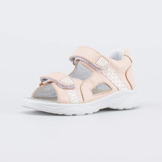 Розовые кожаные босоножки подходят для девочки дошкольного возраста.