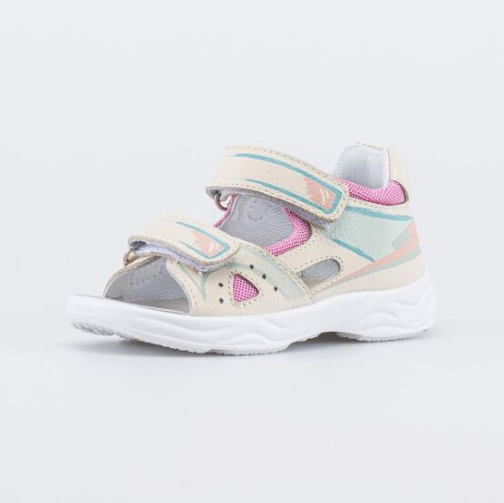 Кожаные сандалии с липучками разработаны для девочки дошкольного возраста.