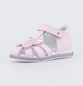 Верх розовых сандалий выполнен из гипоаллергенной и дышащей натуральной кожи, дополненной деталями из мягкого сетчатого текстиля. Украшен нашивкой с надписью 1936 – год основания фабрики «Егорьевск-обувь».