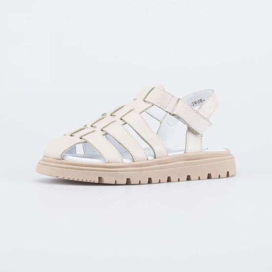 Бежевые кожаные босоножки отлично подходят для летних образов девочки школьного возраста.