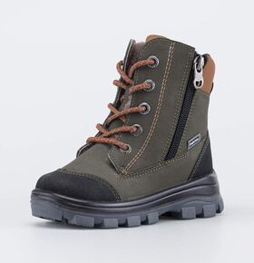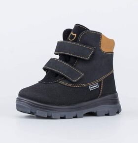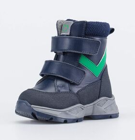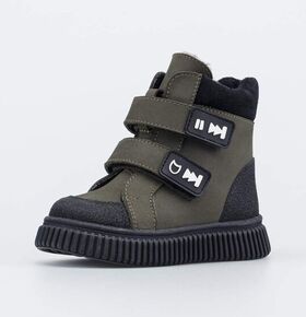 Зимние ботинки на липучках подходят для мальчика, который только начинает ходить. Верх и классический язычок выполнены из натуральной кожи-нубука оливкового цвета.