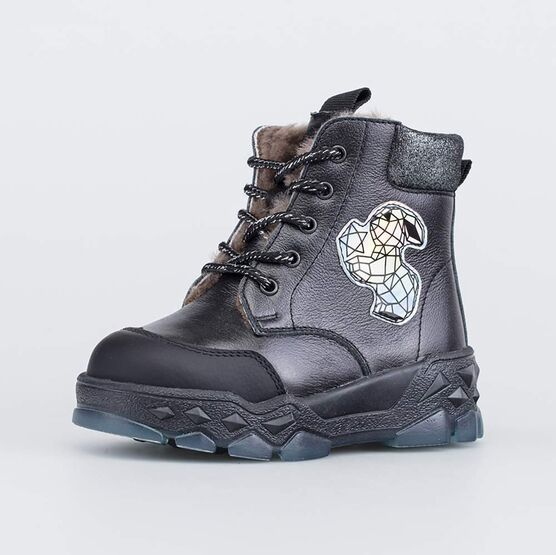Зимние ботинки на молнии предназначены для девочки дошкольного возраста. Верх и классический язычок выполнены из натуральной гладкой кожи.