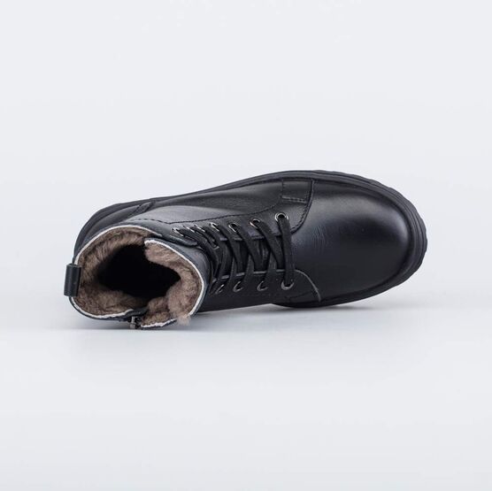 Классические зимние ботинки из натуральной кожи предназначены для девочки школьного возраста.