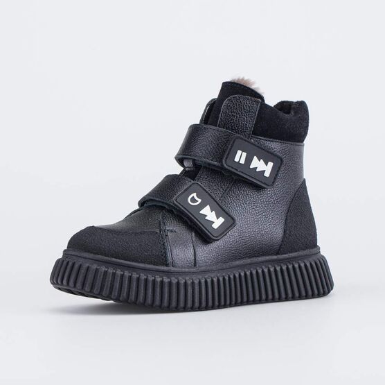 Ботинки черного цвета на овчине походят для мальчика-школьника.