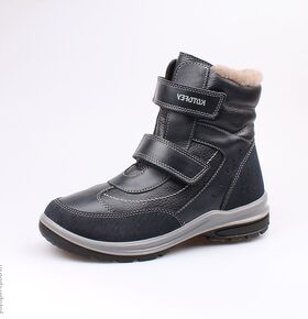 Зимние ботинки синего цвета на меху походят для мальчика-подростка.