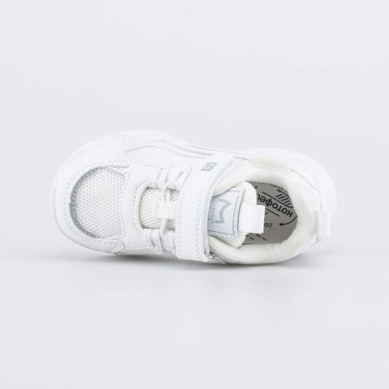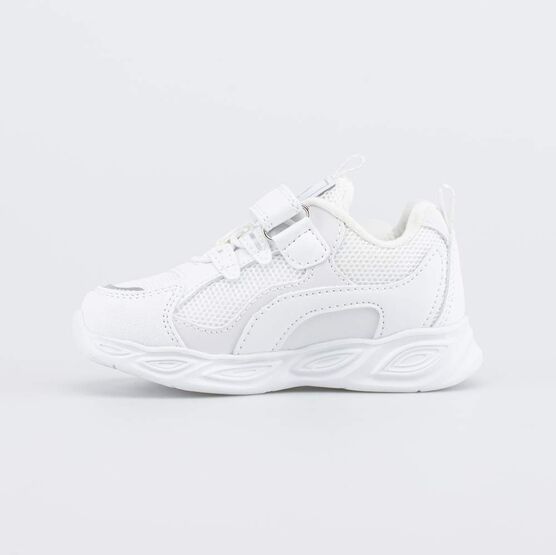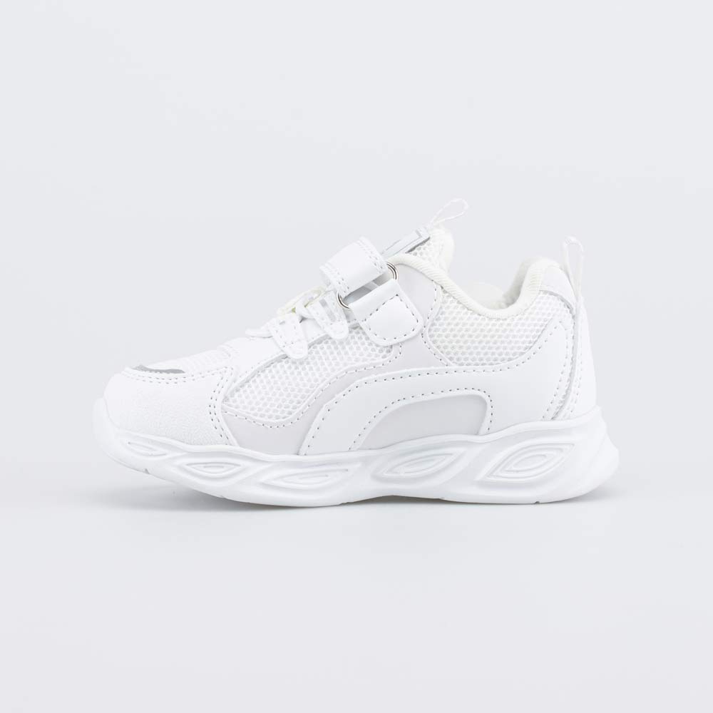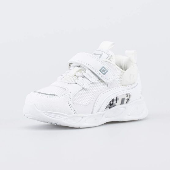 Белые кроссовки со светящейся подошвой созданы с учетом особенностей детской стопы и подходят для девочки, которая уже начала активно ходить.