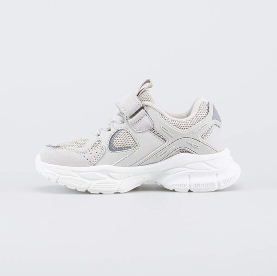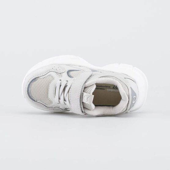 Бежевые кроссовки на белой подошве разработанны с учетом особенностей детской стопы и подходят для детей дошкольного возраста.