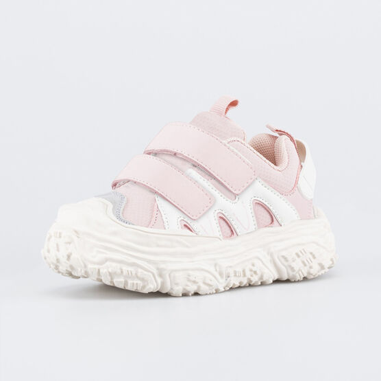 Детские розовые кроссовки привлекающие внимание необычной фактурой подошвы, подходят для девочки дошкольного возраста.