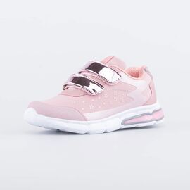 Яркий декор: LED-подсветка в подошве, ПУ-камера с пайетками в районе манжета, серебристые липучки и принт.