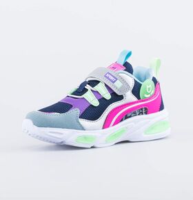 Гибкая, легкая и амортизирующая подошва из ЭВА оснащена светодиодами, которые срабатывают при каждом шаге. Накладки из ТЭП на ходовой поверхности повышают сцепление с полом или природным грунтом.