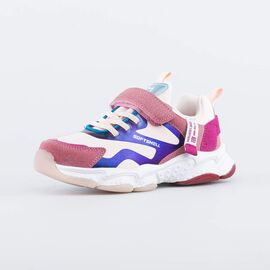 Розовые кроссовки для девочки выполнены в модном тренде на высокой подошве, которая создает ощущение устойчивой и массивной обуви, при этом сохраняя анатомические свойства.