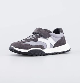 Верх серых кроссовок выполнен из вязаного текстиля, который обеспечивает высокую воздухопроницаемость и сохраняет комфорт внутри подростковой обуви даже при длительной носке.