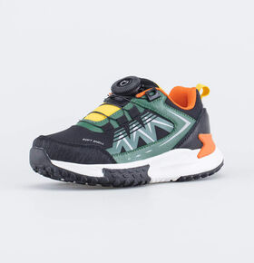 Верх черных кроссовок выполнен из вязаного текстиля, который обеспечивает высокую воздухопроницаемость и сохраняет комфорт внутри подростковой обуви даже при длительной носке.