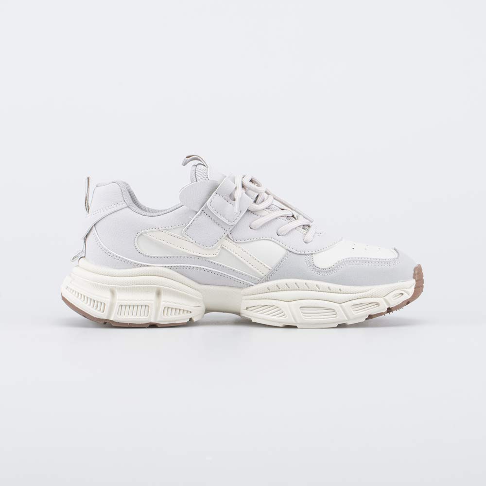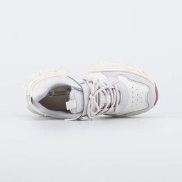 Удобные кожаные кроссовки выполнены в сером цвете, который эффектно дополнен бежевой деталью на ходовой поверхности.