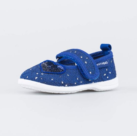 Туфли украшены нашивкой в виде сердечка с пайеткамии и серебристыми точками по всему периметру обуви.