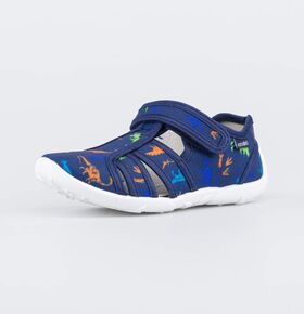 Синие текстильные кроссовки для мальчика подходят для жарких дней и повседневного использования в детском саду.