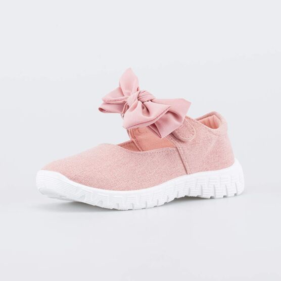 Розовые текстильные туфли с бантиком подходят для жарких дней и для повседневного использования в детском саду.
