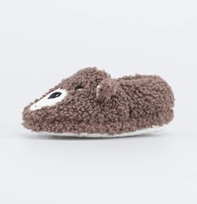 Уютные домашние тапочки для мальчика-дошкольника украшены пушистым зверьком.