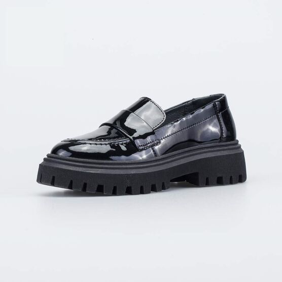 Лакированные туфли-лоферы классического чёрного цвета отлично дополнят школьный образ девочки.