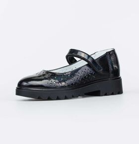Черные туфли на маленьком каблуке имеют верх из гипоаллергенной и дышащей натуральной кожи-велюра. Подкладка и стелька изготовлены из натуральной гладкой кожи светлого оттенка – не придется переживать, что школьная обувь окрасит носочки или колготки.