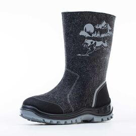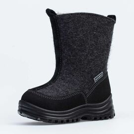 Валенки выполнены из черного войлока и подходят для мальчика школьного возраста.