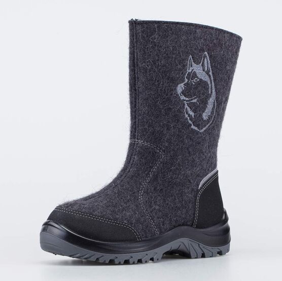 Высокие валенки с подкладкой из шерстяного меха рассчитаны на сильные морозы. Войлок плотный, с водоотталкивающими свойствами, дышит и создаёт при этом приятный климат вокруг стопы на улице и в помещении.