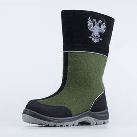 Носок и пятка усилены кожаными накладками с полиуретановым покрытием, они защищают войлок от влаги и реагентов.