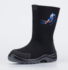 Плотный войлок обладает водоотталкивающими свойствами, дышит и создаёт приятный микроклимат вокруг стопы. Дополнительную теплоизоляцию обеспечивает войлочная стелька. Носок и пятку от влаги и реагентов защищают кожаные накладки с ПУ-покрытием.