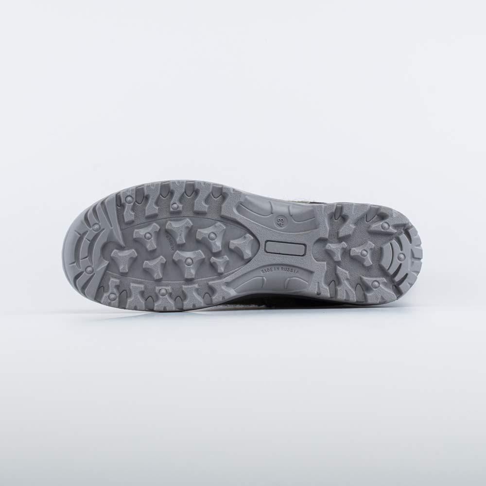 Носок и пятка защищены накладками из натуральной кожи с полиуретановым покрытием. Клеевая подошва выполнена из морозостойкого материала. Вокруг пятки светоотражающий элемент.