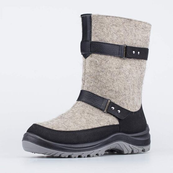 Верх и стелька - из натурального войлока, 100% овечья шерсть. Подкладка из шерстяного меха на основе натуральной овечьей шерсти обеспечивают сухое тепло в сильные морозы до - 30, помогают сохранить комфорт при сырой и влажной погоде.