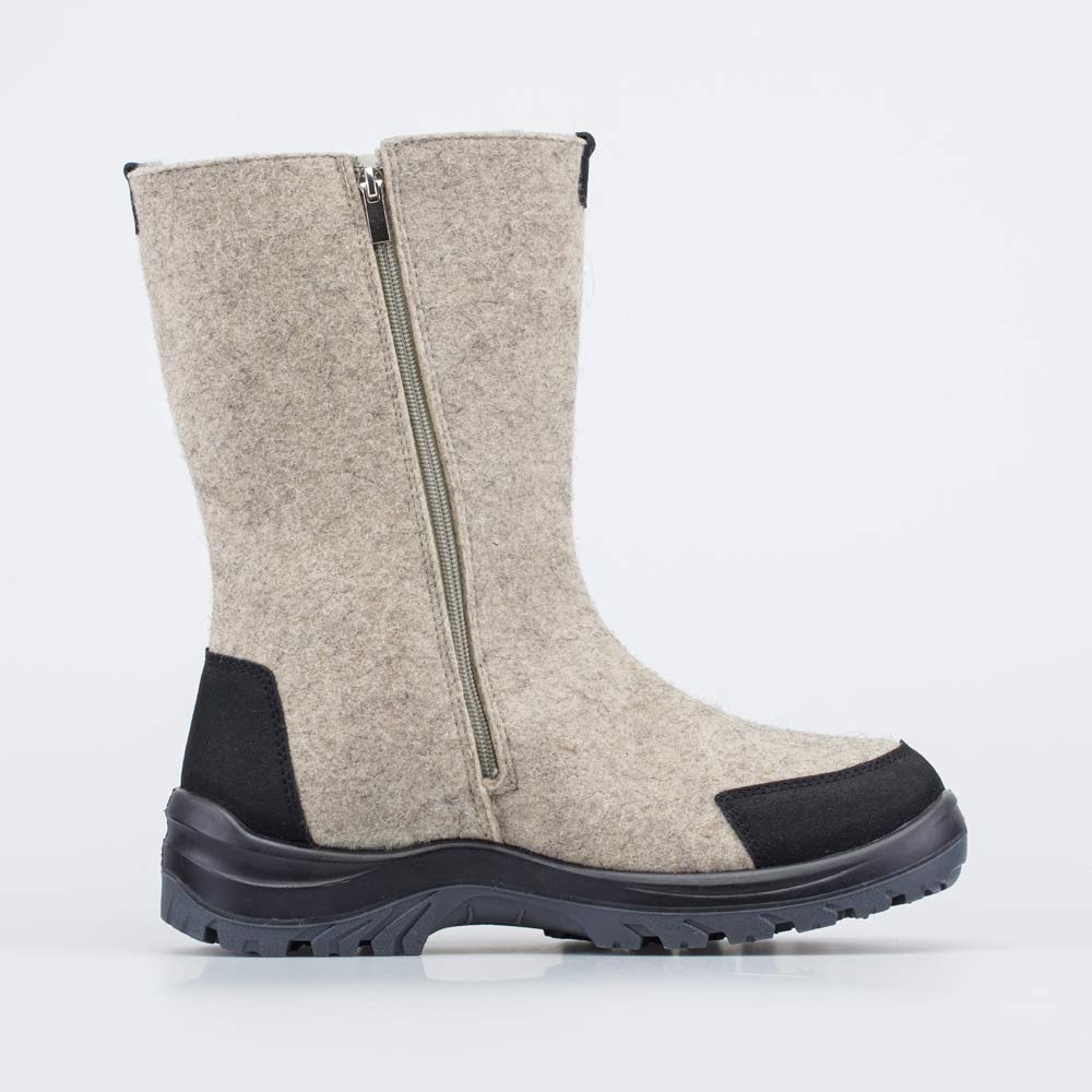 Носочная и пяточная части защищены кожаными накладками с полиуретановым покрытием. Они предохраняют войлок от влаги и реагентов.
