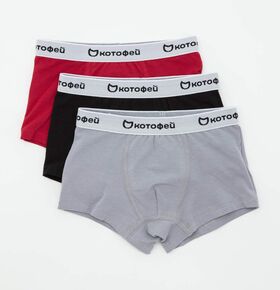 Комплект состоит из 3-х трусов серого, черного и красного цвета.