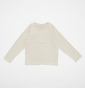 - лонгслив с длинным рукавом имеет спущенную линию плеча и круглый вырез горловины,
