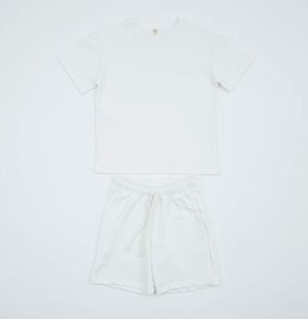 - низ и рукава футболки, а также низ шорт имеют модный необработанный срез, подчеркивающий легкую небрежность для создания современных стильных образов.