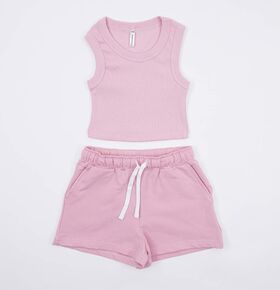 07864062-40 Комплект льняной рубашка + шорты розовый