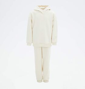 Костюм состоит из худи с капюшоном и брюк. Худи прямого свободного силуэта со спущенным плечом. По низу рукава и изделия манжет из кашкорсе в цвет футера. Длина изделия до ягодичной складки. Брюки - прямого свободного силуэта. На передней половинке брюк два боковых кармана. Верхний срез обработан поясом из кашкорсе в цвет футера. Внутри пояса вставлена резинка, а также регулируемый шнур. Низ брюк собран на резинку.
