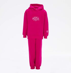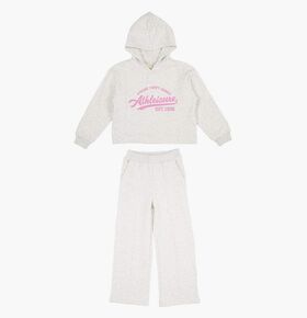 Детский трикотажный костюм из футера состоит из олимпийки на молнии с капюшоном и брюк. Практичный и удобный комплект для девочки.