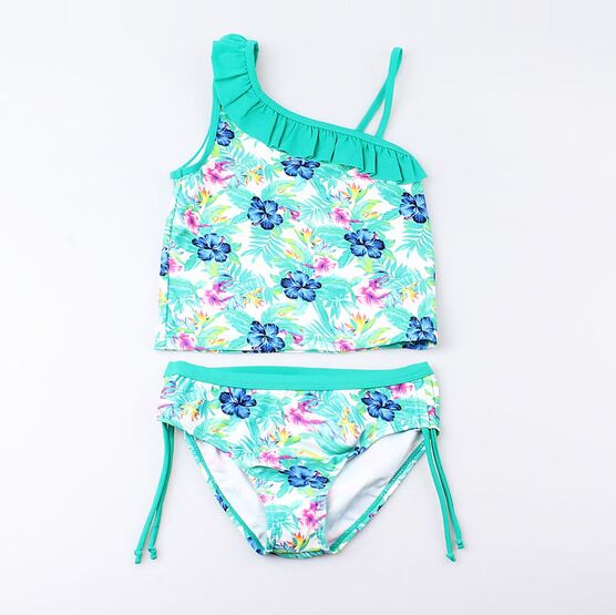 Красивый модный купальник яркой цветочной расцветки для самых незабываемых, ярких и солнечных каникул в жизни вашего ребенка.