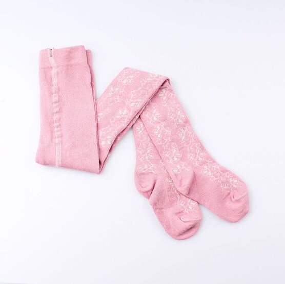 Колготки гладкие с рисунком в виде кружев, выполненных перекидной петлей.