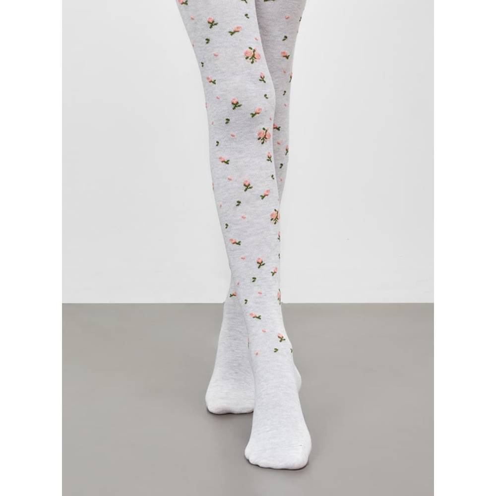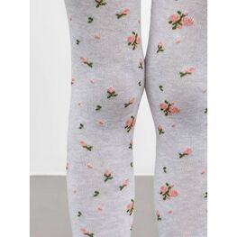 Детские хлопковые колготки серого цвета с рисунком в виде розочек для девочки.
