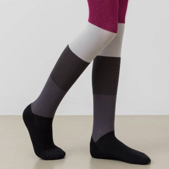 Колготки с махровой стопой и рисунком в виде поперечных полосок.