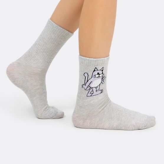 Детские гладкие носки из хлопка с рисунком в виде веселого кота.
