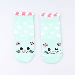 Детские носки с рисунком в виде мордочки мышки и разноцветным пикотом по борту подходят для детского сада и повседневной носки в жаркие, летние дни.