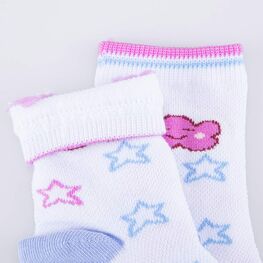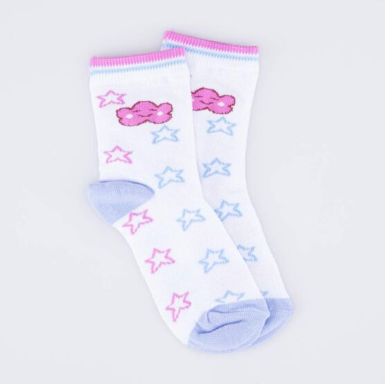 Однотонные ажурные носки с рисунком "Тучки и звезды" . Носки изготовлены из натурального качественного хлопка и отличаются износоустойчивостью к потёртостям, сохраняют вид долгое время без потери цвета. Небольшое содержание полиамида и эластана позволяет производить носки высокой плотности и эластичности. Благодаря этому они не теряют форму и не скатываются при деликатном уходе.
