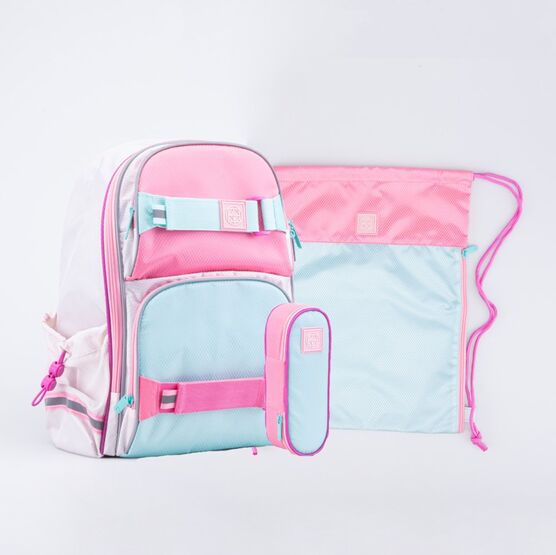 Школьный набор состоит из школьного рюкзака, мешка для обуви и пенала.