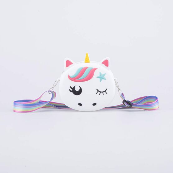 Силиконовая сумка через плечо в виде единорога подходит для девочки дошкольного и школьного возраста. Небольшая сумка также подойдет ребенку младшего возраста, так как малый вес позволит держать сумку в руках или повесить на плечо без усталости для ребенка.