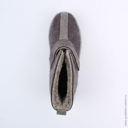 Верхний слой валенок составляет войлок из 100% овечьей шерсти. Снаружи такая обувь обладает естественными влагоотталкивающими свойствами за счет ланолина. Соприкасаясь с кожей человека, войлок создает микромассажный эффект: очень полезный в холодное время года, т.к. усиливает кровоток. Носить обувь из войлока можно на босу ногу, это полезно и приятно. Поэтому мы обязательно включаем в коллекцию модели без подкладки, в них комфортно от – 10 до +5.